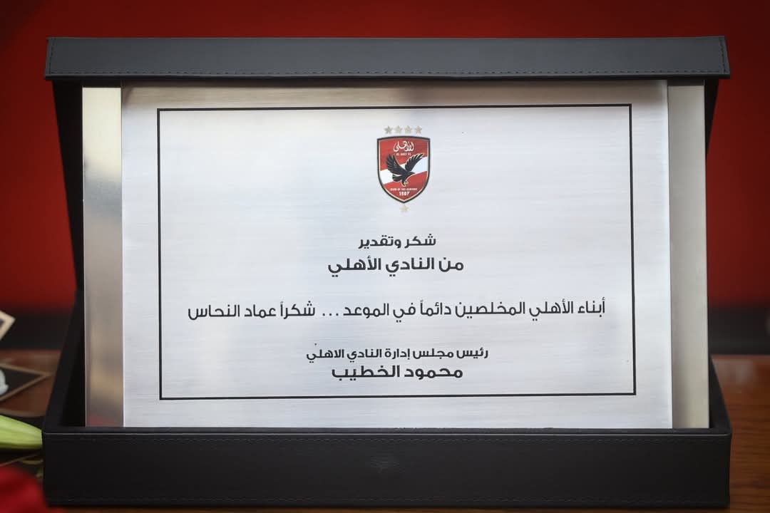 وقام الكابتن محمود الخطيب رئيس النادي الأهلي ومختار مختار رئيس لجنة التخطيط على توجيه الشكر للنحاس على الفترة التي قضاها داخل منظومة الفريق الأول، مؤكدين تقدير النادي الكامل لإخلاصه وتفانيه، سواء داخل الملعب أو خارجه، وعلى مساهمته في دعم الجهاز الفني وتحقيق الاستقرار الفني خلال الفترة الماضية.