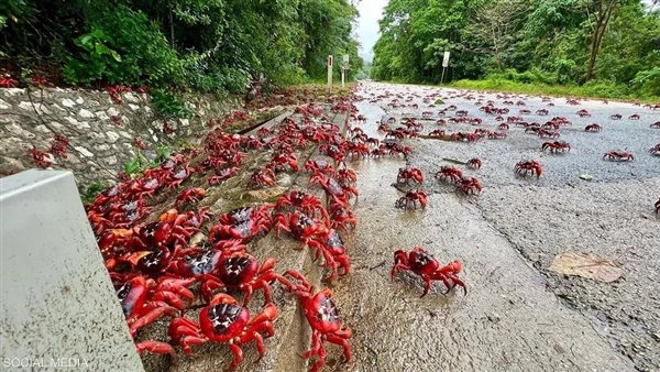 بدأت عشرات الملايين من السلطعون، هجرتها السنوية في جزيرة الكريسماس بأستراليا، مما أدى إلى تحويل الطرق والأشجار إلى سجادة حمراء.