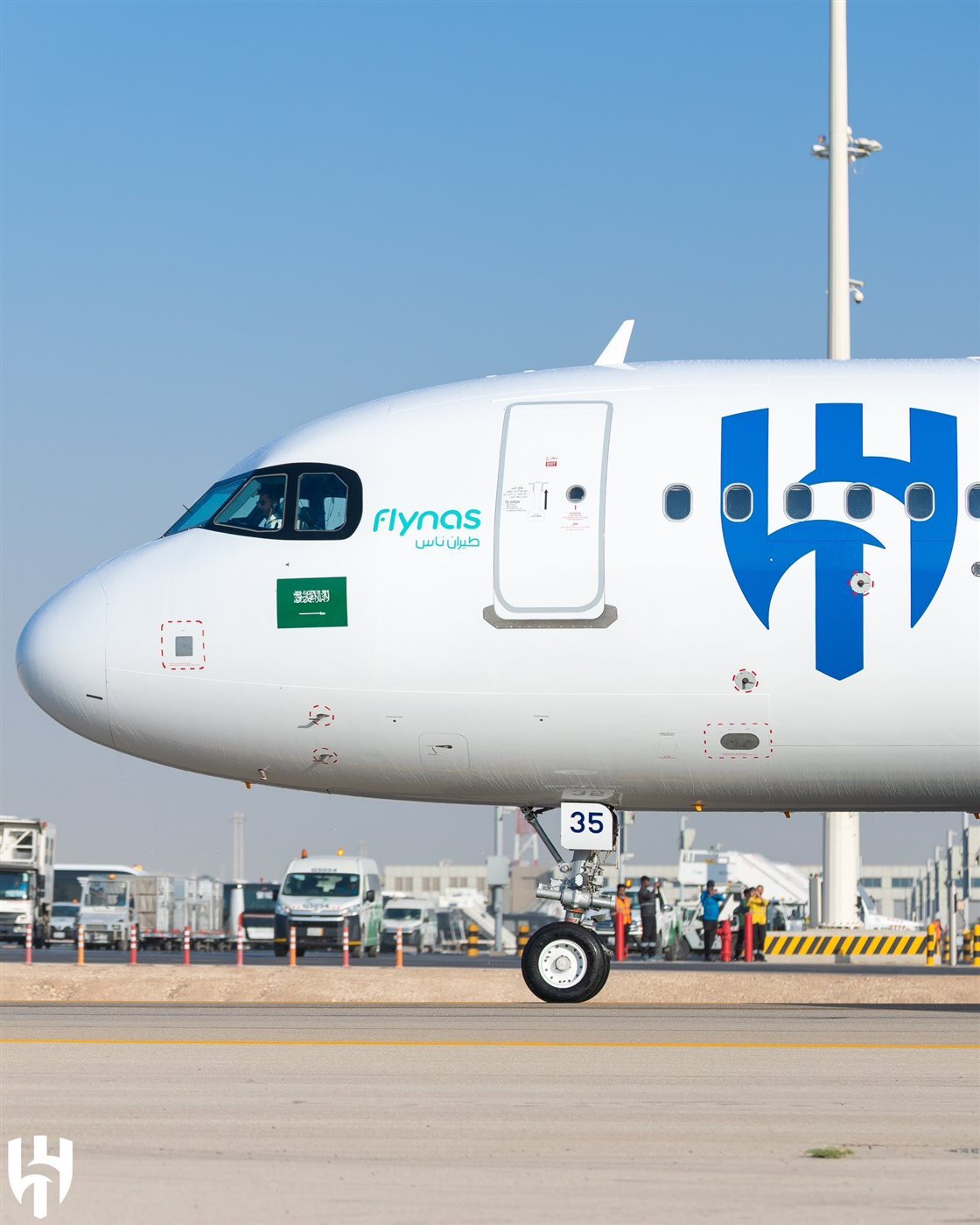 ووصلت طائرة الهلال إلى مطار الملك خالد الدولي في العاصمة السعودية الرياض، حيث ظهرت بطلاء كامل للهوية والعلامة التجارية للنادي، وذلك ضمن الشراكة بين الطرفين.