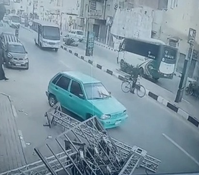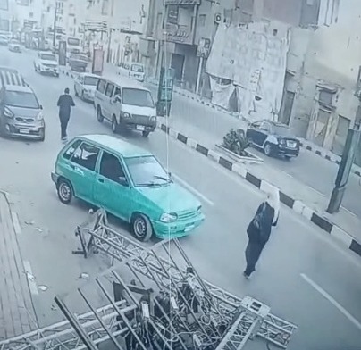 يذكر أنه خلال قيام سائقة السيارة الملاكي بالسير في الدوران بأحد الشوارع كانت هناك قدم حديدي لأحد الأعمدة التي تحمل الشاشة في طريقها مما عملت على دهسها بعجلة السيارة الخلفية وسقطت الشاشة على الأرض، ما تسبب في إتلافها.