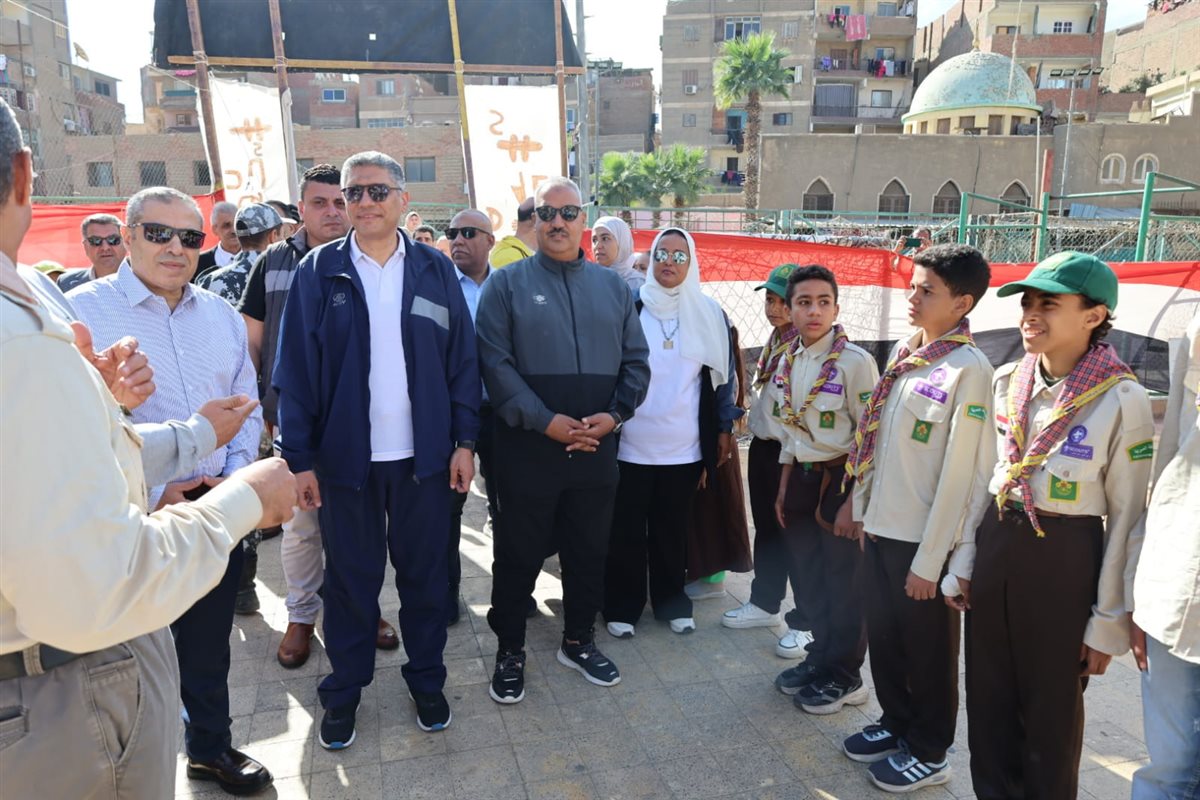 محافظ الجيزة ينزل الملعب ويشارك الشباب لعب الكرة خلال إطلاق المهرجان الرياضي الأول