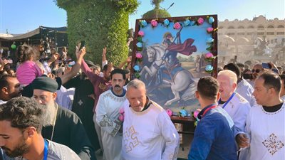 شهد دير الشهيد العظيم مارجرجس بجبل الرزيقات غرب محافظة الأقصر، في مشهد مبهج خطف أنظار الزائرين، مفاجأة لافتة خلال اليوم الختامي للاحتفال السنوي، بعدما تم تقديم تورتة ضخمة بلغ طولها نحو 5 أمتار، وسط هتافات الزائرين مرددين: يا مارجرجس.. سِرّك سِرّك.