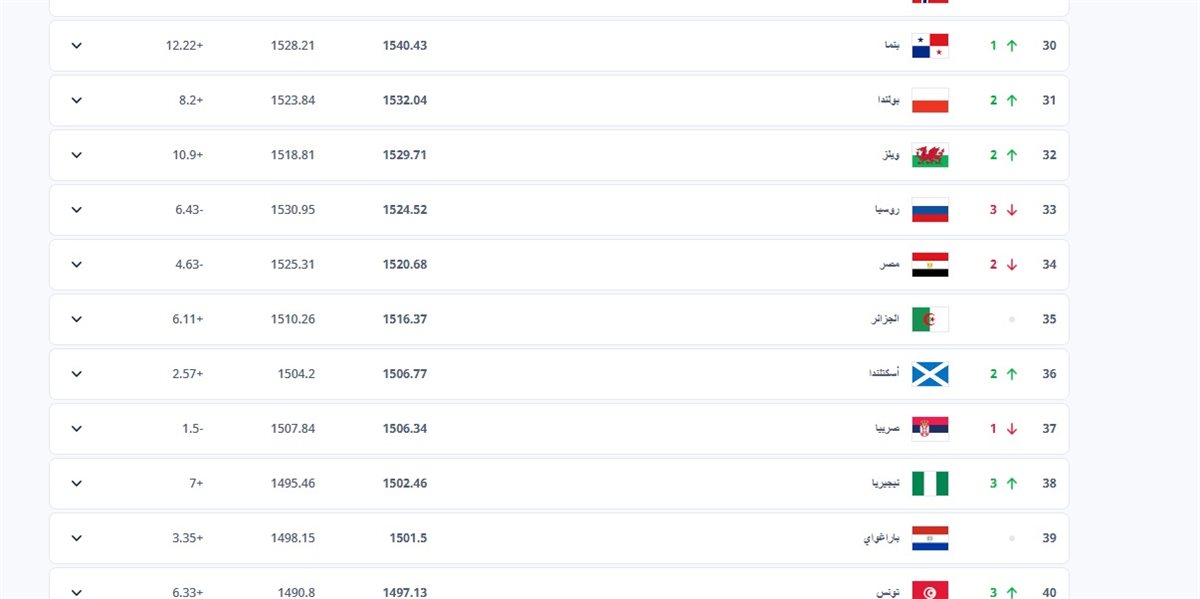 منتخب مصر يتراجع إلى المركز 34 عالميًا في تصنيف فيفا لشهر نوفمبر 2025