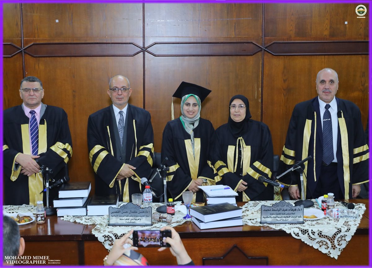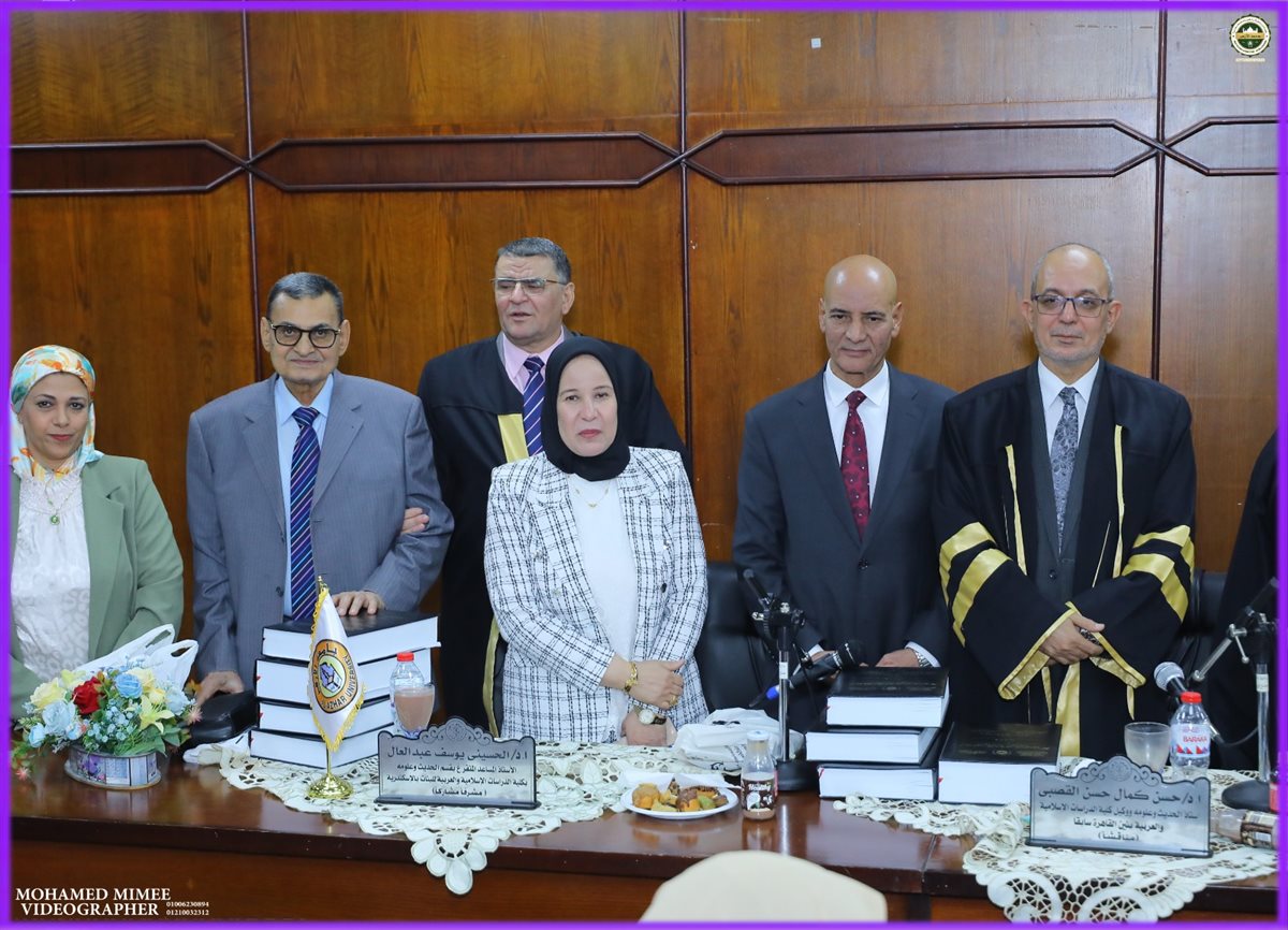 وشارك في المناقشة كوكبة من أساتذة الكلية ترأسهم عميدة الكلية الأستاذة الدكتورة عبير عبد الصادق، ووكيلة الكلية الأستاذة الدكتورة غادة العمروسي، والأستاذ الدكتور محروس رضوان؛ أستاذ الحديث وعلومه المتفرغ بالكلية، والأستاذة الدكتورة هيام عبد الباسط؛ أستاذ الحديث وعلومه المتفرغ، ورئيس وحدة ضمان الجودة بالكلية، والأستاذ الدكتور محمد حسن قنديل أستاذ الحديث وعلومه، والأستاذة الدكتورة هويدا الطويل أستاذ العقيدة والفلسفة، والأستاذة الدكتورة نجوى شتا أستاذ ورئيس قسم الفقه السابق، والدكتورة أميمة حسن؛ مدرس الفقه المقارن، ونائب رئيس وحدة ضمان الجودة بالكلية، والدكتور محمد أبو زهو مدرس الحديث وعلومه، والدكتور إسلام محمود مدرس الحديث وعلومه، والعديد من السادة أعضاء هيئة التدريس.