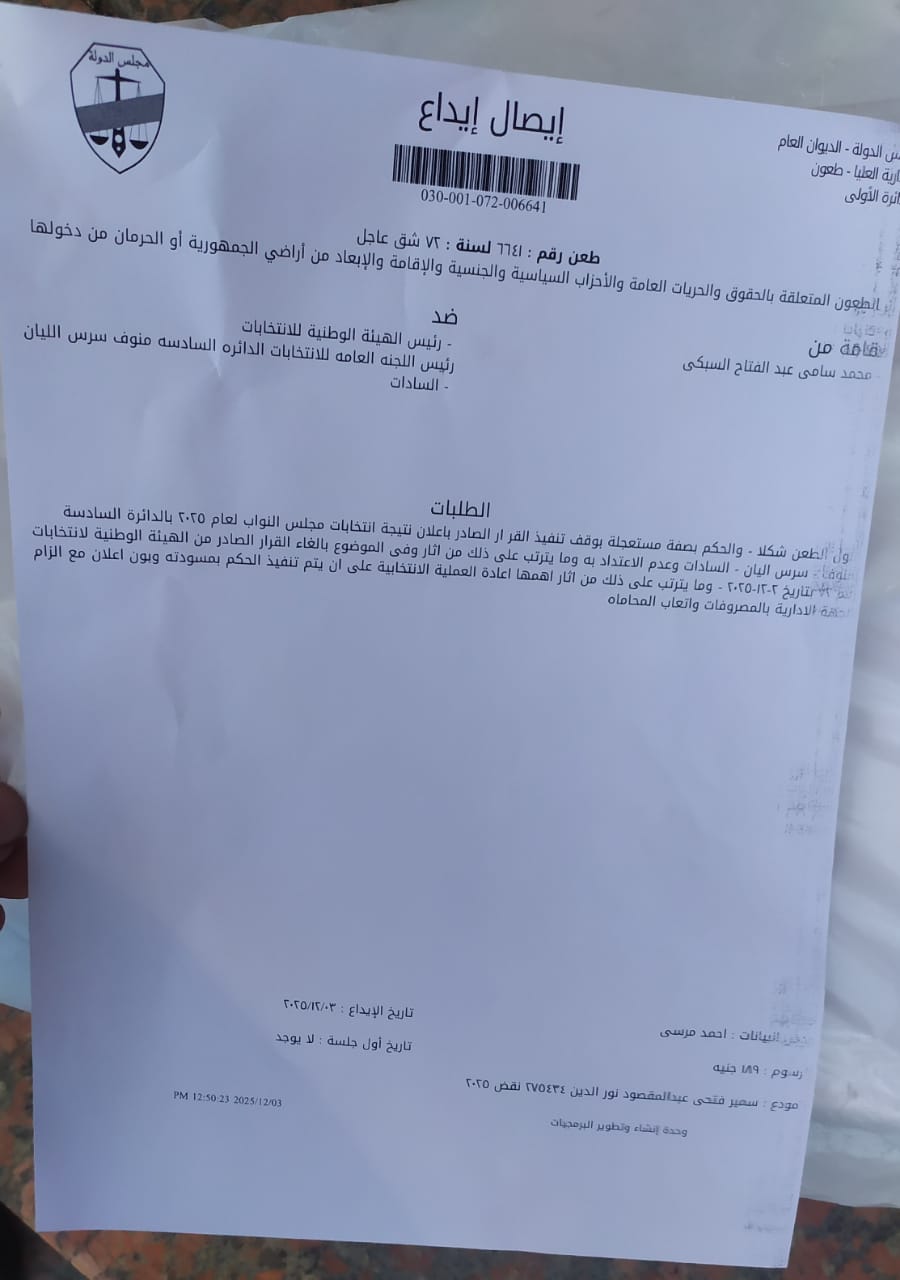 شهدت الدائرة السادسة منوف- سرس الليان- السادات، تطورًا جديدًا في المشهد الانتخابي، عقب تقدم عدد من المرشحين اليوم بطعون رسمية أمام المحكمة الإدارية العليا بالقاهرة، وذلك اعتراضًا على النتائج المبدئية لجولة انتخابات مجلس النواب.