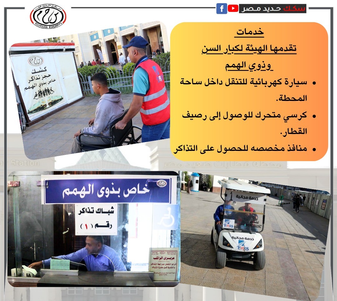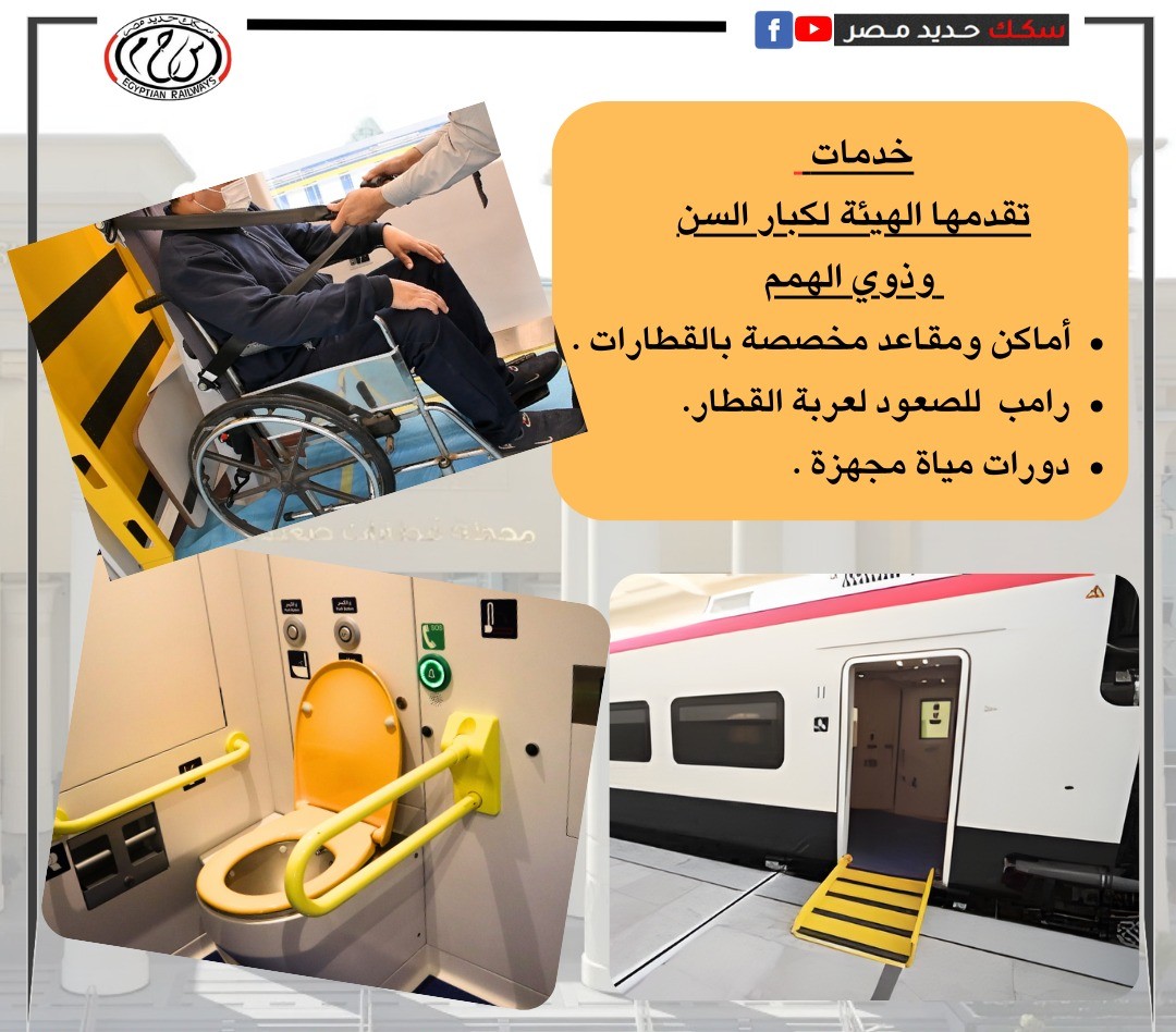 تواصل الهيئة القومية لسكك حديد مصر جهودها للارتقاء بالخدمات المقدمة لكبار السن وذوي الهمم، تنفيذًا لتوجيهات وزارة النقل وحرصًا على تمكينهم وتوفير تجربة سفر مريحة وآمنة داخل المحطات وعلى متن القطارات.