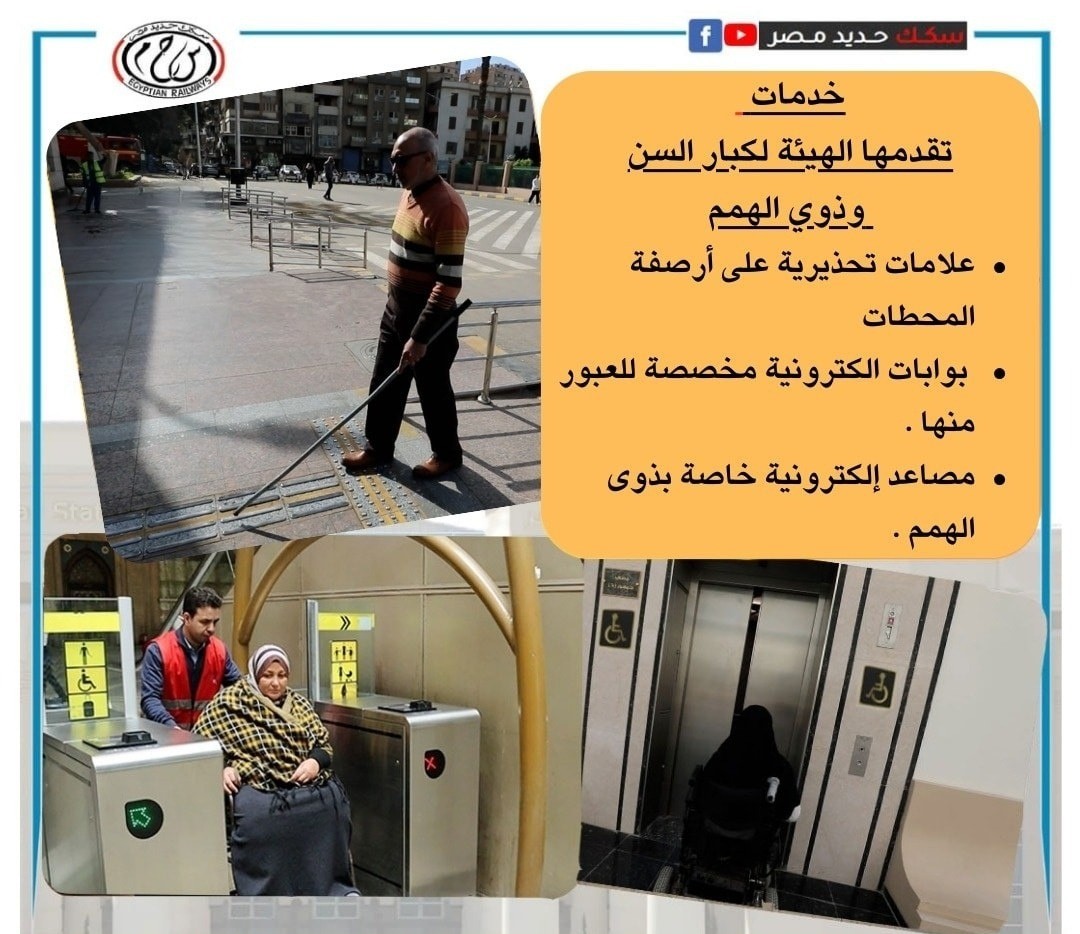 وفي هذا الإطار، خصصت الهيئة شبابيك خاصة لحجز وصرف التذاكر بالمحطات الرئيسية، لتقليل فترات الانتظار وتسهيل حصولهم على الخدمة، إلى جانب تنفيذ برامج توعية منتظمة للعاملين بشأن أسس التعامل مع هذه الفئة وتلبية احتياجاتها باحترافية.