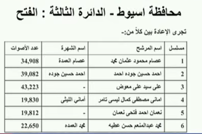 الوطنية للانتخابات: الإعادة بين 6 مرشحين في دائرة الفتح بأسيوط│أسماء