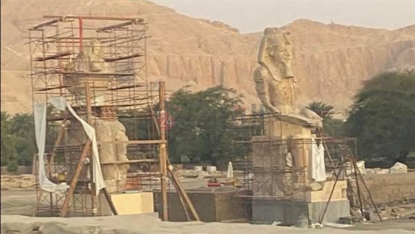وحصل القاهرة 24 على آخر صورة لتمثالي الملك أمنحتب الثالث داخل معبد ملايين السنين بمنطقة كوم الحيتان غرب الأقصر، وذلك قبل ساعات من مراسم إزاحة الستار عنهما رسميًا، في حدث أثري مرتقب يعيد إحياء أحد أعظم شواهد الحضارة المصرية القديمة.