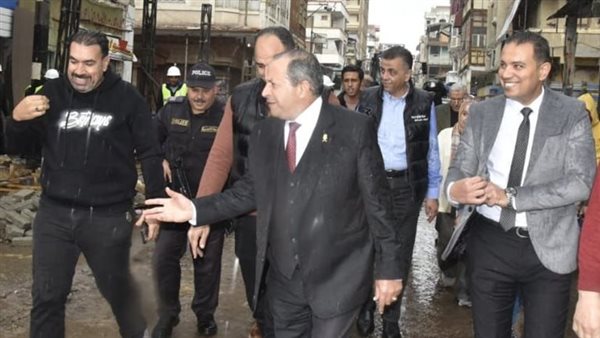 تحت الأمطار.. محافظ بورسعيد يتابع أعمال تطوير شارعي الحميدي والتجاري