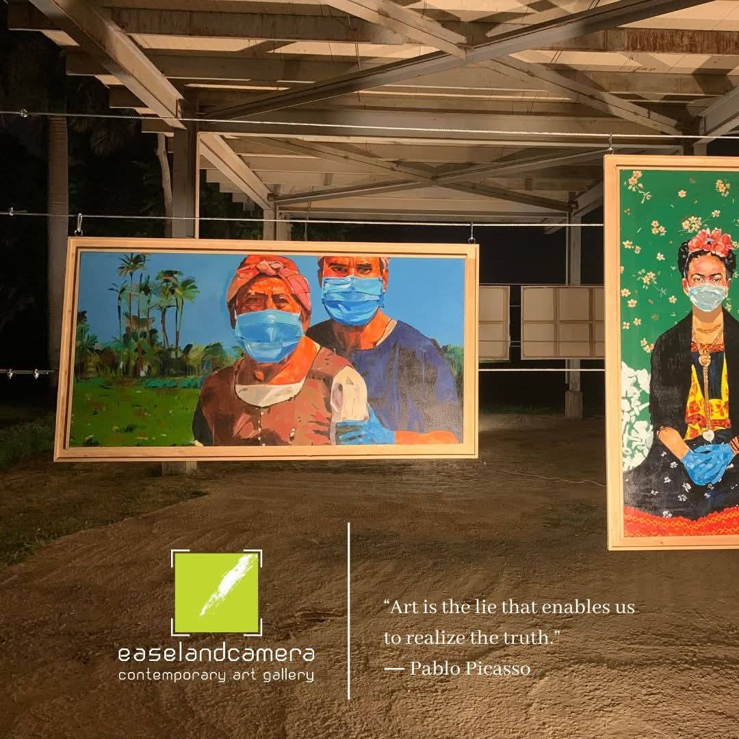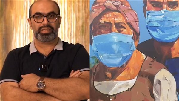 وأوضح أنه نفذ عددًا كبيرًا من الاسكتشات التي تناولت الفكرة نفسها، وانتقلت بعض أعماله إلى معارض في دول عربية وأمريكية، قبل أن يختار شخصيات ذات رمزية قومية وعالمية، ويعيد تقديمها في سياق معاصر يعكس الخوف الإنساني من الوباء، ومن بينها لوحة محمود المليجي وعزت العلايلي من فيلم «الأرض»، والتي اقتناها الفنان أحمد السقا من أحد المعارض التي عرضت أعماله.