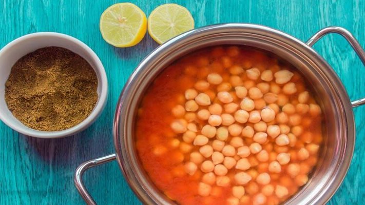 • ضع الحمص في ماء على النار مع رشة صغيرة من الملح حتى ينضج تمامًا ويصبح طريًا.