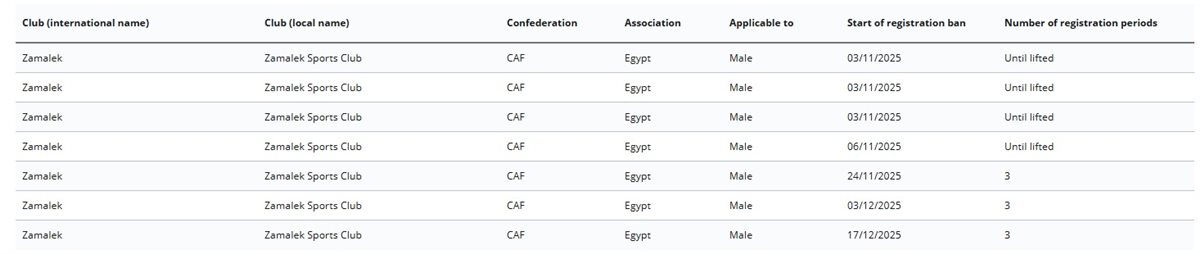 أعلن الاتحاد الدولي لكرة القدم فيفا إيقاف قيد جديد لنادي الزمالك وذلك عبر موقعه الرسمي.