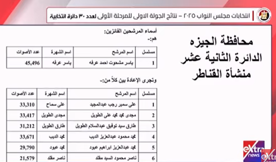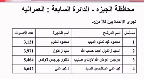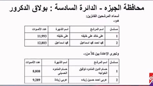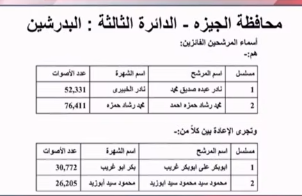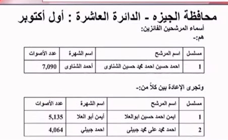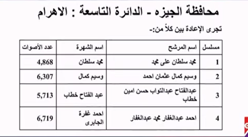 وجاءت نتيجة انتخابات النواب في الجيزة، كالتالي: