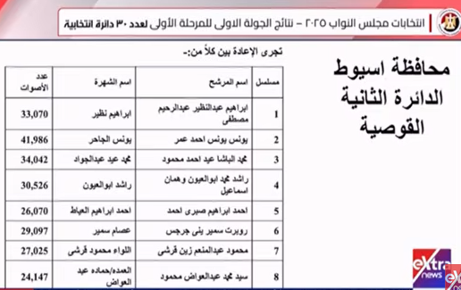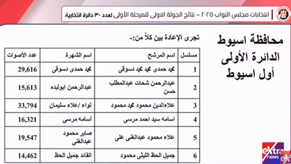 الدائرة الملغاة بأحكام قضائية.. نتيجة انتخابات النواب فى أسيوط والوادى الجديد وسوهاج رسميا