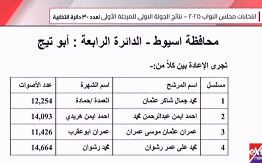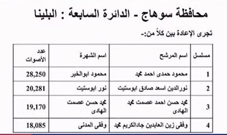 وجاءت نتيجة انتخابات النواب في أسيوط والوادى الجديد وسوهاج، كالتالي: