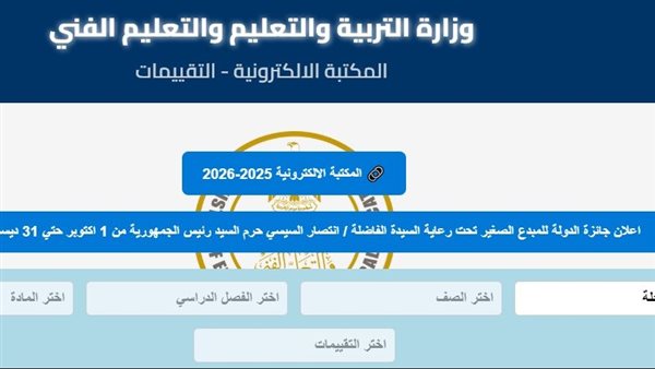 وتتاح تقييمات الطلاب الأسبوعية لصفوف التعليم الابتدائية بداية من الصف الأول الابتدائي في المواد الأساسية عبر موقع وزارة التربية والتعليم من خلال المكتبة الإلكترونية من هـــــنـــــا https://ellibrary.moe.gov.eg/cha/ وذلك باتباع الخطوات التالية:
