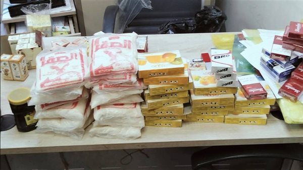وأضاف أنه تم ضبط تاجر تمويني قام بالتجميع بدون وجه حق، وبحوزته 72 كيس سكر، و108 زجاجات زيت، و247 كيس مكرونة، إلى جانب ضبط 96 زجاجة زيت منتهية الصلاحية، و420 كيلو أرز غير صالح للاستهلاك الآدمي، و30 عبوة كلور منتهية الصلاحية.