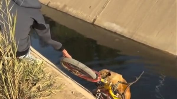 شابان ينقذان كلبا من الغرق في ترعة باستخدام دراجة