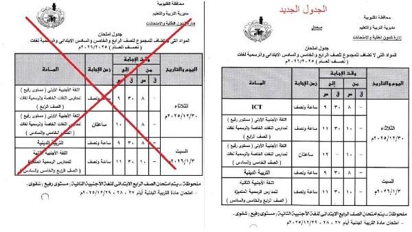 تعليم القليوبية تُعدل جدول امتحانات النقل للمرحلتين الابتدائية والإعدادية.. والامتحانات تبدأ 10 يناير
