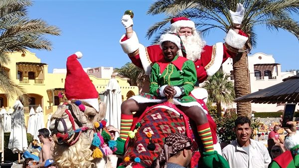 بابا نويل يوزع الهدايا على السائحين بفنادق الغردقة