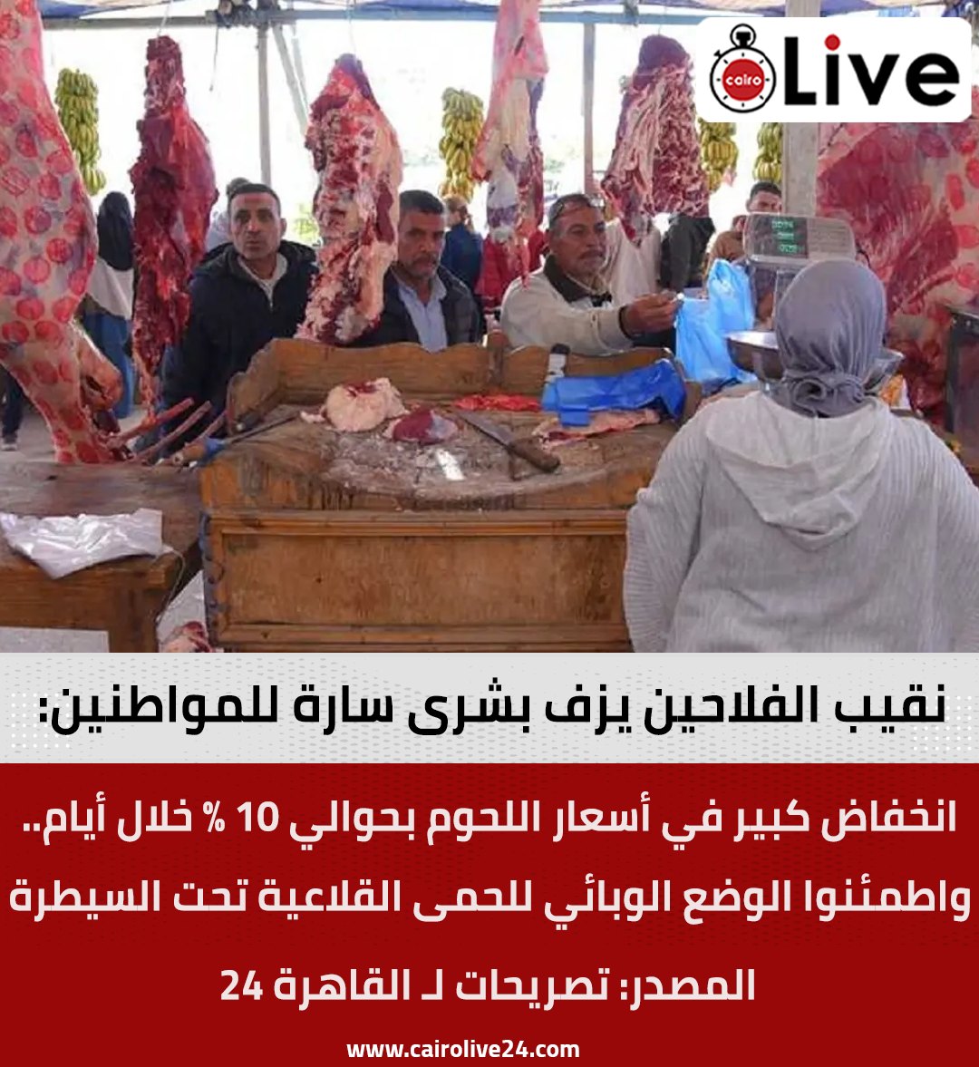 وتوقع رئيس شعبة القصابين عدم صعود أسعار اللحوم الحمراء في مصر حتى شهر رمضان المقبل، نتيجة توجه الشريحة الأكبر من المصريين لشراء الدواجن. وارتفع عدد رؤوس الماشية في مصر إلى 8.1 مليون رأس خلال 2024، بنمو 6.7% عن العام السابق، وفق بيانات الجهاز المركزي للتعبئة العامة والإحصاء.
