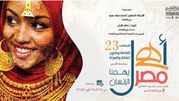 تستقبل محافظة الأقصر، غدا الإثنين، فعاليات الملتقى الثقافي الثالث والعشرين لثقافة وفنون الفتاة والمرأة بالمحافظات الحدودية، الذي تنظمه الهيئة العامة لقصور الثقافة، ضمن مشروع "أهل مصر" تحت شعار "يهمنا الإنسان".