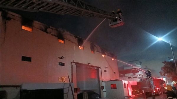 بعد الدفع بـ8 سيارات إطفاء وخزان مياه.. انتهاء أعمال التبريد والسيطرة التامة على حريق مخزن كراتين بيض بالعبور