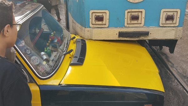 تفاصيل تصادم سيارة تاكسي وعربة ترام