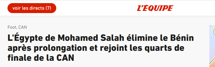 سلّطت صحيفة «ليكيب» الفرنسية الضوء على فوز منتخب مصر على نظيره البنيني بنتيجة 3-1، في المباراة التي جمعتهما مساء الاثنين على ملعب أكادير، ضمن منافسات دور الـ16 من بطولة كأس أمم إفريقيا 2025 المقامة حاليًا في المغرب وتستمر حتى 18 يناير الجاري.