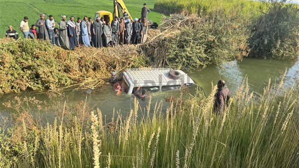 انتشال سيارة ميكروباص سقطت داخل ترعة في قنا