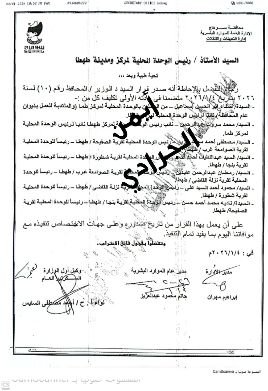 محافظ سوهاج يصدر حركة تنقلات محدودة بالوحدات المحلية | مستند