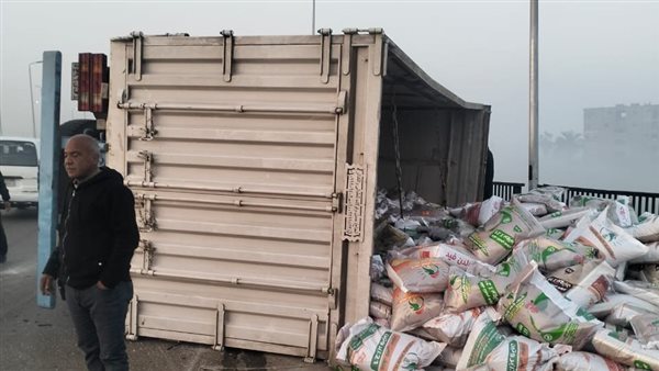 إصابة سائق وتباع في حادث انقلاب تريلا على الطريق الزراعي قبل كوبري قها بالقليوبية