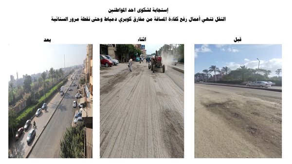 وعلى الفور، كلفت الهيئة العامة للطرق والكباري، شركة متخصصة في أعمال تنفيذ الطرق وذلك لصيانة سطح الرصف واستكمال القطاع الإنشائي للطريق وفقا للمواصفات والاشتراطات الهندسية، وذلك لعدم التأثير على حركه المرور بمدينة دمياط وزيادة الأمان والسلامة المرورية على هذا القطاع من الطريق، وتم الانتهاء من الأعمال بما يضمن سلامة المركبات والأفراد.