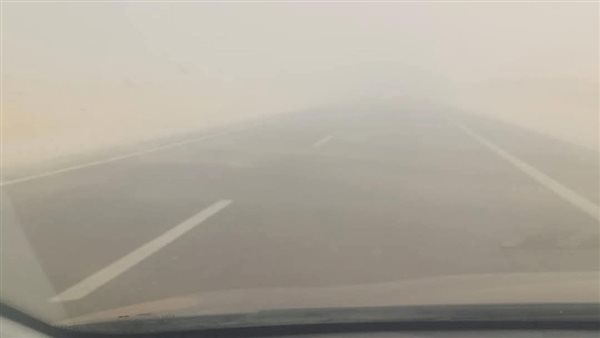 عاصفة ترابية على طريق تنيدة - منفلوط بالوادي الجديد.. وتحذيرات للسائقين من القيادة السريعة