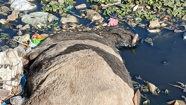 رفع عدد من الحيوانات النافقة التي تم رصدها بمصرف عزبة أحمد فوزي