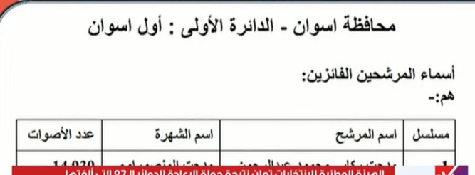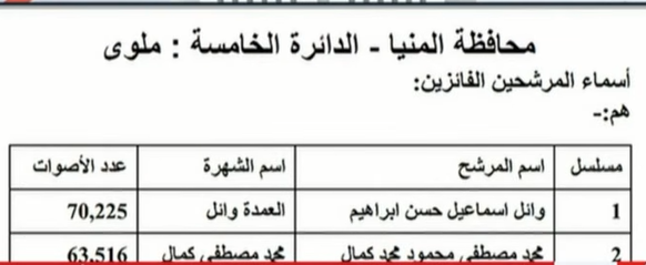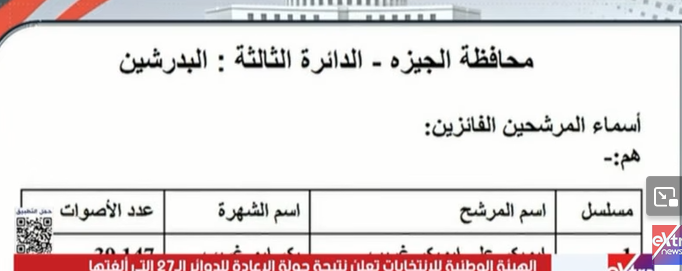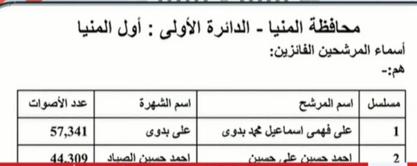 رسميا.. الوطنية للانتخابات تعلن نتيجة الـ 27 دائرة الملغاة بالمرحلة الأولى لانتخابات النواب