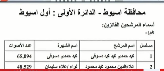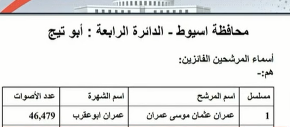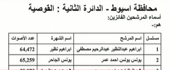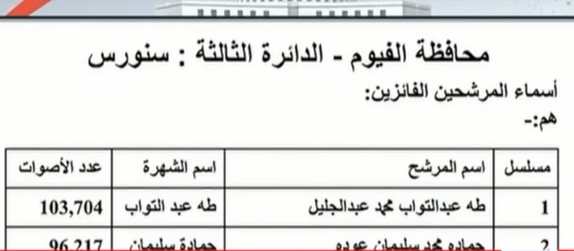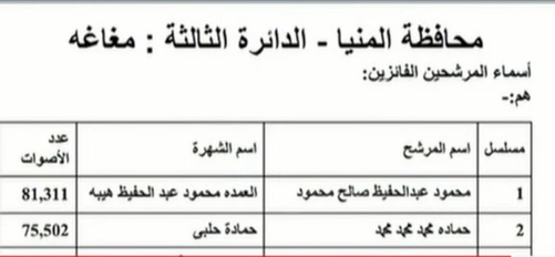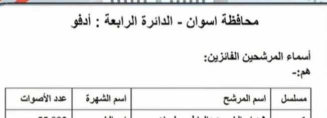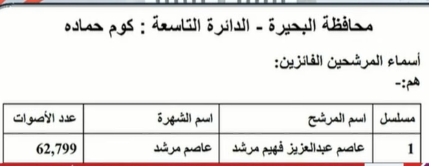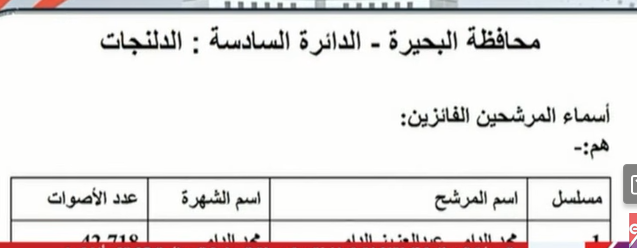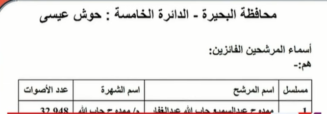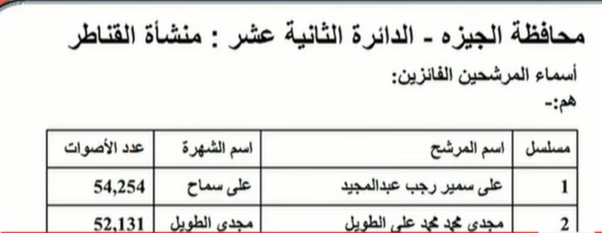 جاءت نتيجة انتخابات الدوائر الـ 27 الملغاة كالآتي:-