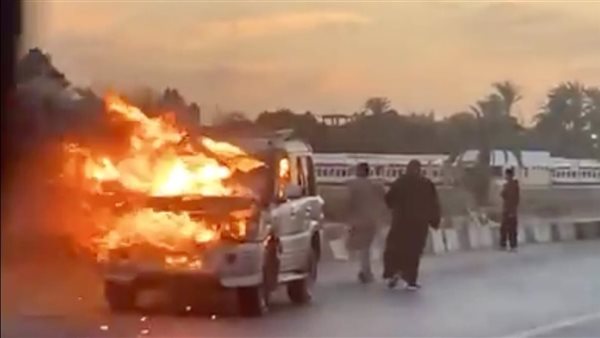 تفحم سيارة على طريق الطود بالأقصر.. ونجاة قائدها من الموت | صور