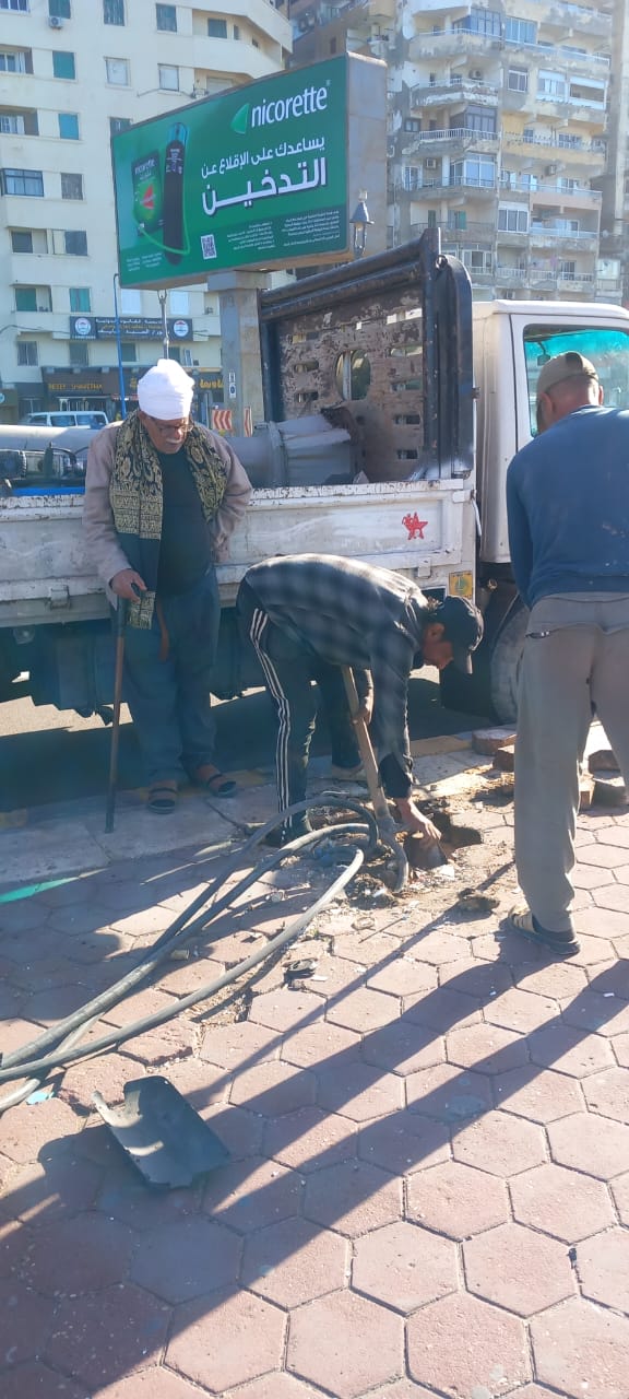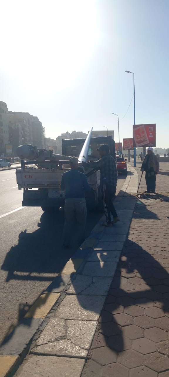 تابعت أحياء الإسكندرية أعمال رفع أعمدة الإنارة والإعلانات، التي تسببت الرياح في سقوطها، بسبب شدة الرياح العاصفة مع أول أيام نوة الفيضة الكبري من خلال مقاول الصيانة.
