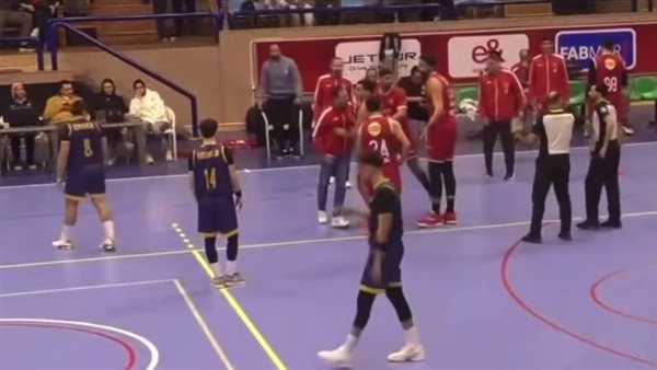 لحظة انفعال لينوس جافريل مدرب سلة الأهلي عقب طرده في مباراة الجزيرة