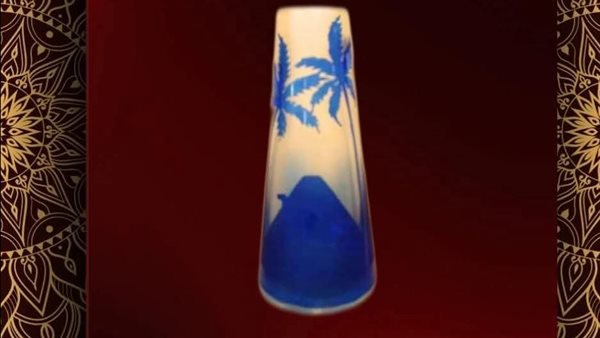 يسلّط متحف ركن فاروق الضوء على واحدة من أبرز مقتنياته الملكية، وهي زهرية زجاجية أسطوانية الشكل، تزينها زخارف هندسية مستوحاة من قمم الجبال باللون الأزرق، إلى جانب رسومات النخيل والجمال، في تعبير فني يجمع بين جمال الطبيعة وروعة الصياغة.