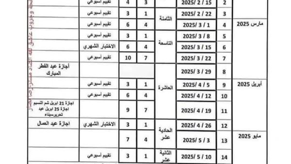 وأوضحت وزارة التربية التعليم، توزيع منهج الرياضيات للابتدائية خلال أشهر فبراير ومارس وأبريل ومايو، بالإضافة إلي مواعيد التقييمات الأسبوعية والاختبارات الشهرية لكل صف فضلا عن الإجازات الرسمية، مشيرة إلى أنه سيتم تخصيص شهر مايو للمراجعة على المنهج وامتحانات الترم الثاني.