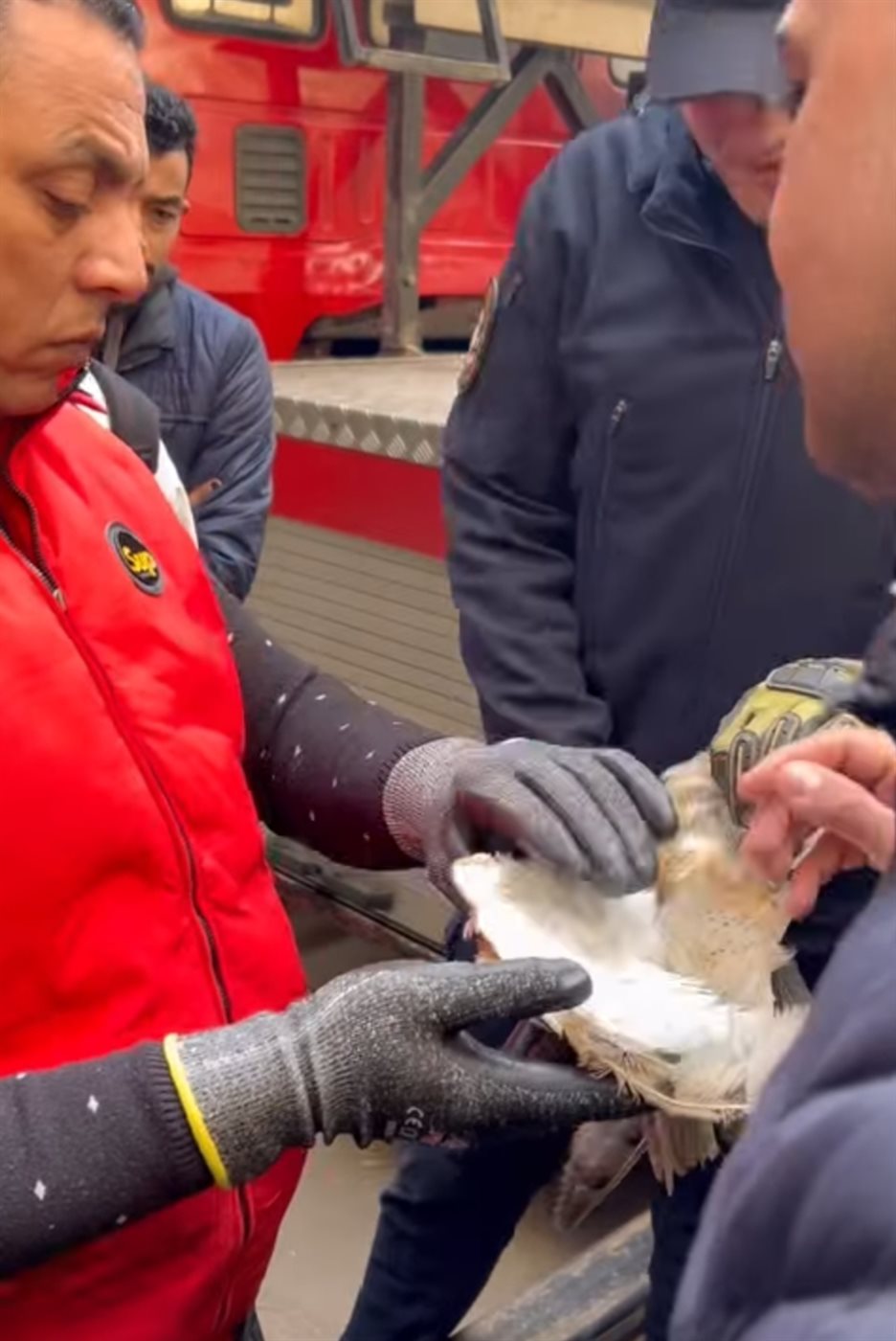 موقف إنساني.. الحماية المدنية وشؤون البيئة ينقذان بومة عالقة مكسورة الجناح أعلى عقار بالإسكندرية