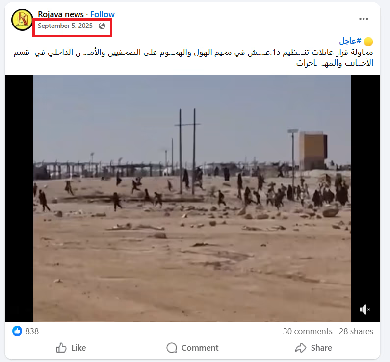 وقتها، كتبت إحدى الصفحات الناشرة للفيديو: محاولة فرار عائلات تنظيم داعش في مخيم الهول والهجوم على الصحفيين والأمن الداخلي في قسم الأجانب والمهاجرات.