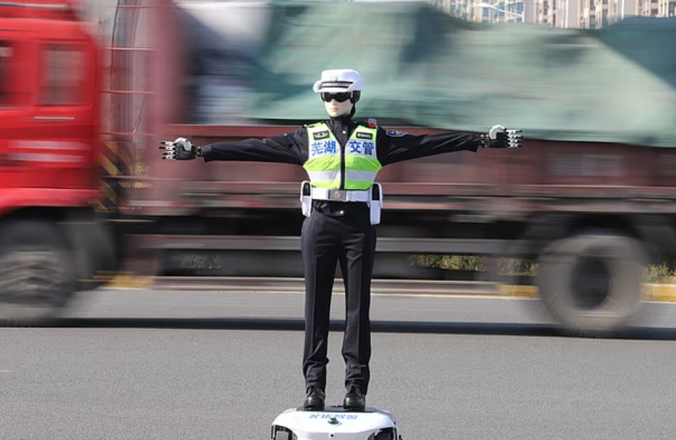 وحسب ما نشرته صحيفة ديلي ميل البريطانية، ظهر الروبوتات، المصممة على هيئة ضباط بشر، وهم يرتدون سترات عاكسة وقبعات بيضاء، أثناء قيامهم بدوريات في الشوارع وإصدار تعليمات مباشرة للمدنيين، وسمع أحد الروبوتات وهو ينبه أحد راكبي الدراجات قائلًا: من أجل سلامتك، يرجى ركوب الدراجة في المسار غير المخصص للمركبات الآلية.