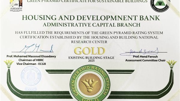 بحوث الإسكان والبناء يمنح شهادة الهرم الأخضر – المستوى الذهبي لبنك التعمير والإسكان بالعاصمة الجديدة