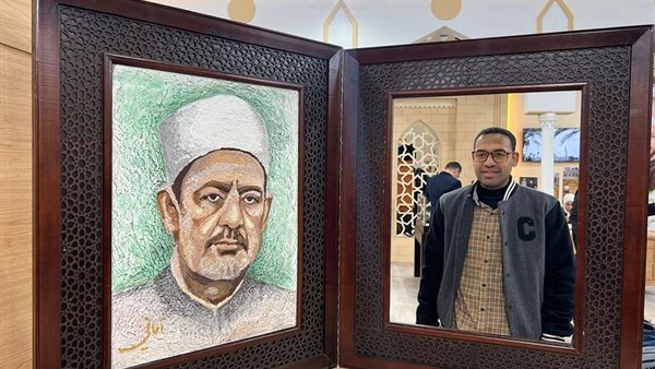 تعجب الزوار.. صورة للذكرى مع الإمام الطيب داخل برواز الكتاب المفتوح في جناح الأزهر الشريف بمعرض الكتاب