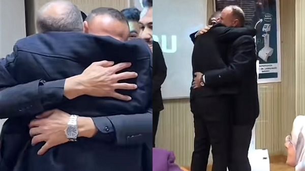 وأظهر الفيديو شابا يُدعى أحمد حسين داخل قاعة المناقشة وسط زملائه، قبل أن يُفاجأ بدخول والده الذي كان مسافرًا خارج البلاد، لتعلو ملامح الدهشة على وجهه ويتحول الموقف سريعًا إلى لحظة امتزجت فيها الدموع بالابتسامة، وسط تصفيق الحضور وتأثر زملائه وأساتذته.