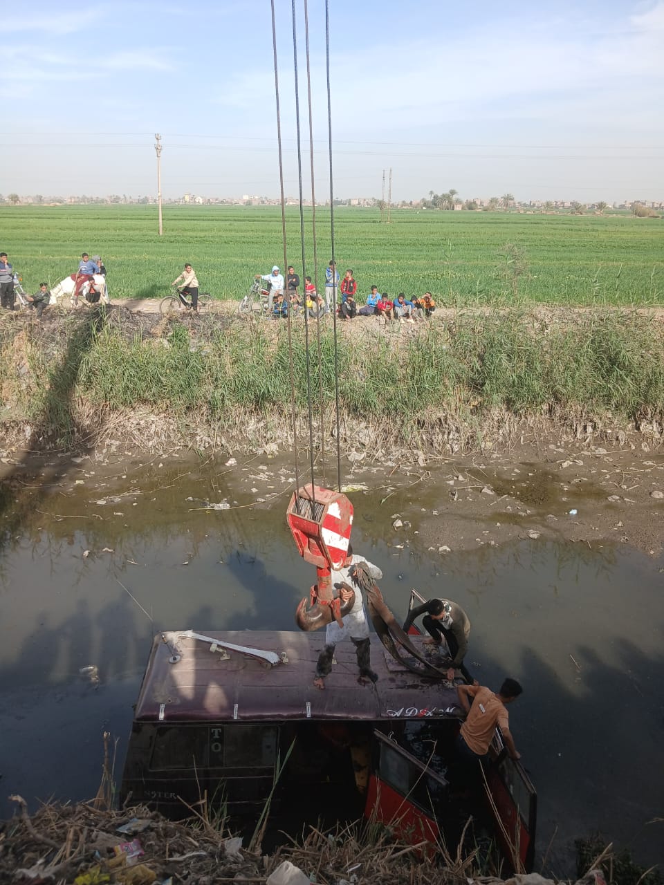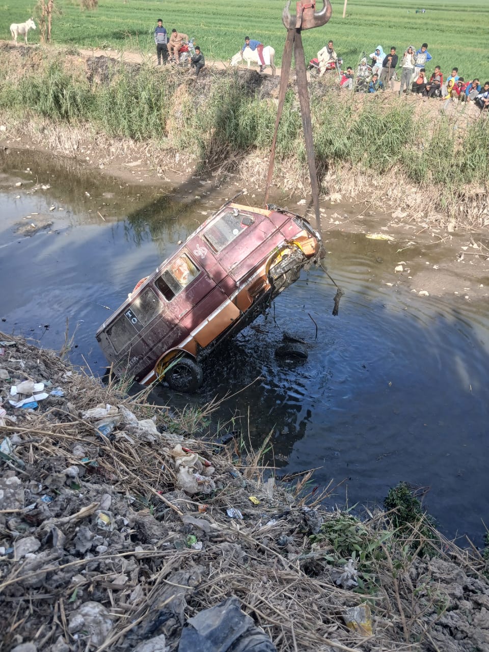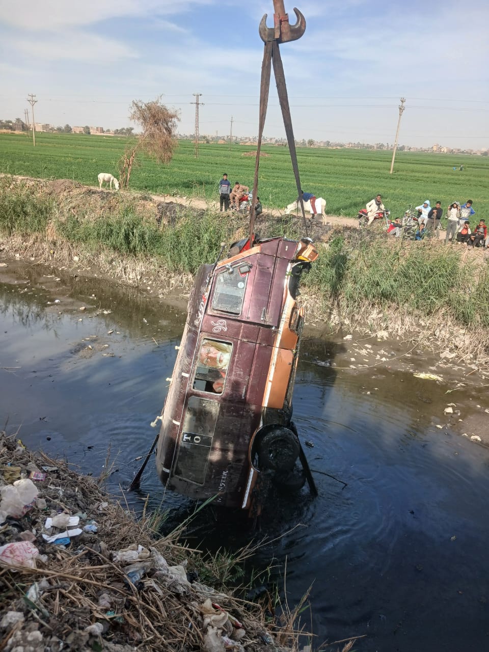 انقلاب ميكروباص في ترعة بسوهاج